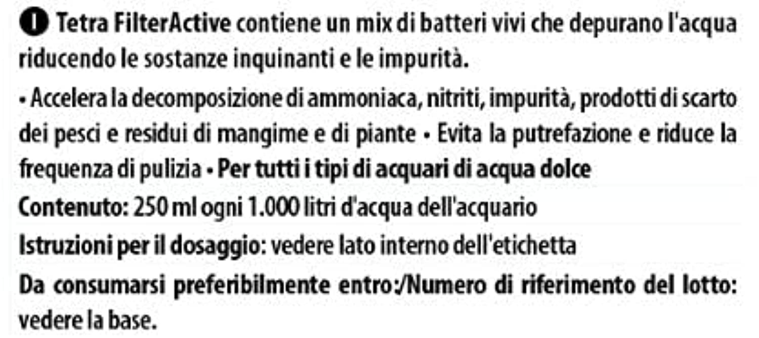 • Contiene batteri vivi che attivano il filtro e batteri che riducono l'accumulo di impurità