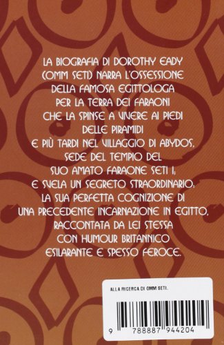 Il libro è la biografia dell'inglese Dorothy Eady, ossessionata sin dall'infanzia dalla sua attrazione per l'Egitto, che la spinse a lasciare l'Inghilterra per recarsi a vivere ai piedi delle Piramidi e più tardi nel villaggio di Abydos, sede del tempio del suo amato faraone Seti I. La Eady, poi nota come Omm Seti, ripercorre la sua vita di egittologa, le cui conoscenze di antichi rituali e dei luoghi di templi restano inspiegabili per molti, nonostante i suoi contributi a grandi scoperte archeologiche. Il libro svela un segreto: la sua perfetta cognizione di una precedente incarnazione in Egitto, raccontata da lei stessa con humour britannico esilarante e spesso feroce. Jonathan Cott è scrittore e giornalista newyorchese.