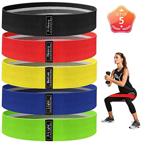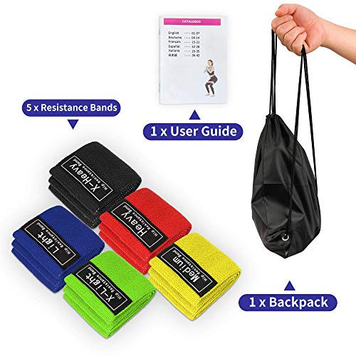 Bande Elastiche Fitness, [Set di 5] Fasce Elastiche di Lattice Antiscivoli in Tessuto con 5 Livelli di Resistenza, Elastici Fitness Uomo Donna per Allenamento di Forza e Flessibilità, Yoga, Pilates