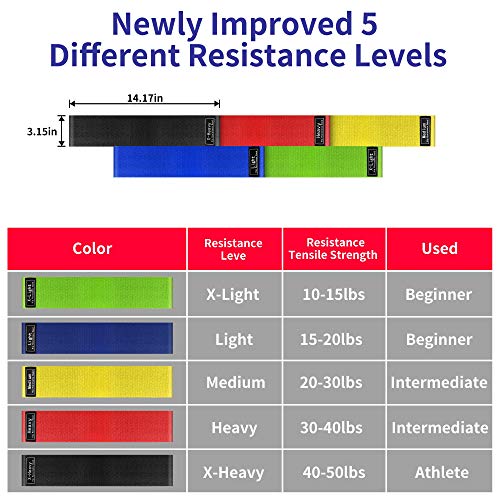 - 2.【5 Diversi Livelli di Resistenza】 La dimensione di tutte e 5 le bande elastiche resistenza è: 72 cm (Lunghezza), 8 cm (Larghezza), 3 mm (Spessore), ma le 5 bande elastiche con diversi livelli di resistenza. Set elastici fitness sono in grado di soddisfare efficacemente il movimento di diverse parti di braccia, gambe e piedi, non devi preoccuparti che la band sia troppo elastica o troppo dura in quanto puoi ottenere la tua dimensione ideale e il livello di forza dalle nostre 5 varianti.