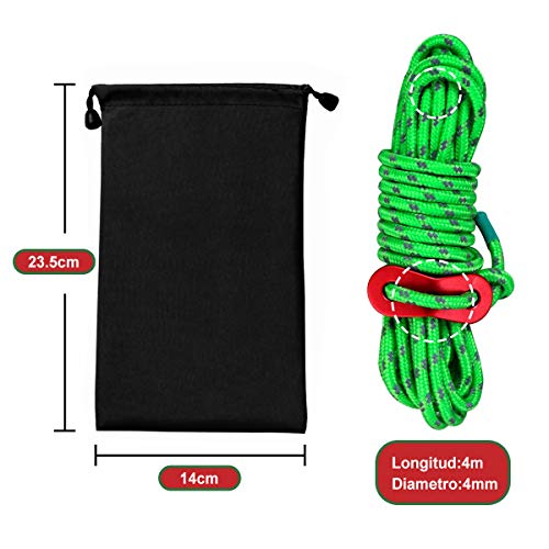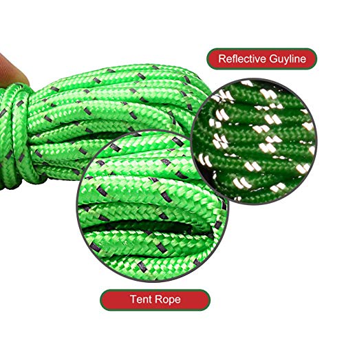 • ♠ MATERIALE PREMIUM - Le corde per tende sono realizzate in corda di nylon e cavo riflettente per ingranaggi; Viene fornito con un regolatore dei tenditori in alluminio che consente regolazioni facili e robuste.