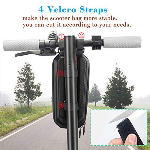 • 【Compatibilità Universale】-- 4 Velcro cinturini rendono la borsa scooter manubrio più stabile e sicura, anche facile da installare; 20cm lunghe cinghie, puoi tagliarlo in base alle tue esigenze, adatto per più scooter elettrico e biciclette pieghevoli elettriche, come Xiaomi M365, Segway, Ninebot, ecc.