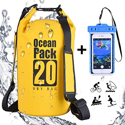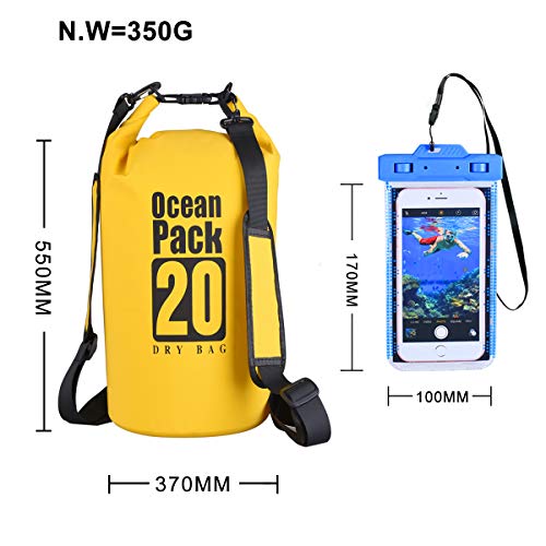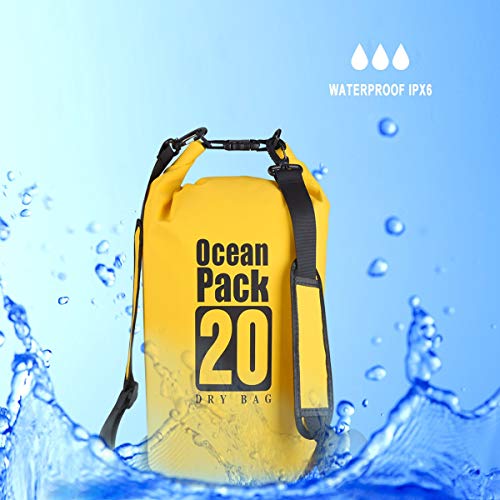 DINOKA Borsa impermeabile, Sacca impermeabile da 20L/30L, Kit 20L, Giallo