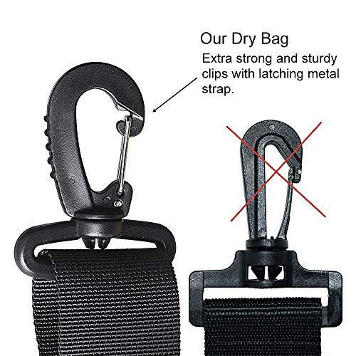 • Facile da usare: basta ribaltare la pratica chiusura roll-top tre volte, poi stringere la chiusura a clip. Il dry bag impermeabile chiuso e allo stesso tempo ha una maniglia per il trasporto. I nostri clip sono larghi di spessore così come anelli di ganci in metallo autobloccanti e sono facili da appendere con una mano.