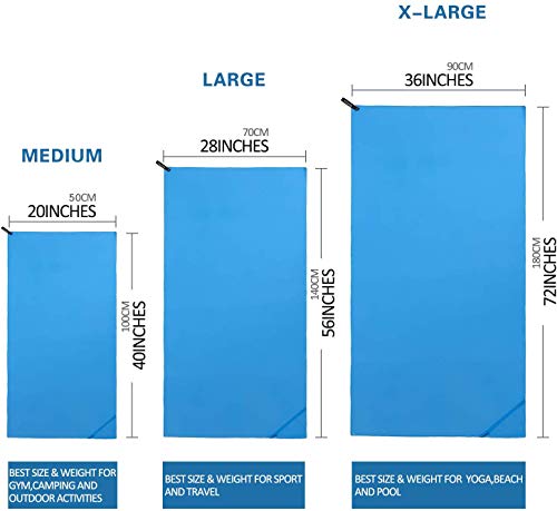 - Disponibile in varie taglie: sono perfetti per la spiaggia, le escursioni e il campeggio, e disponibili in 5 diverse misure (30x60cm, 50x100cm, 70x140cm, 90x180cm, 100x200cm) adatte a ogni uso. L'asciugamano è fornito in una borsetta morbida in EVA con zip, così puoi portarlo con te quando sei in viaggio senza far bagnare il resto della valigia.