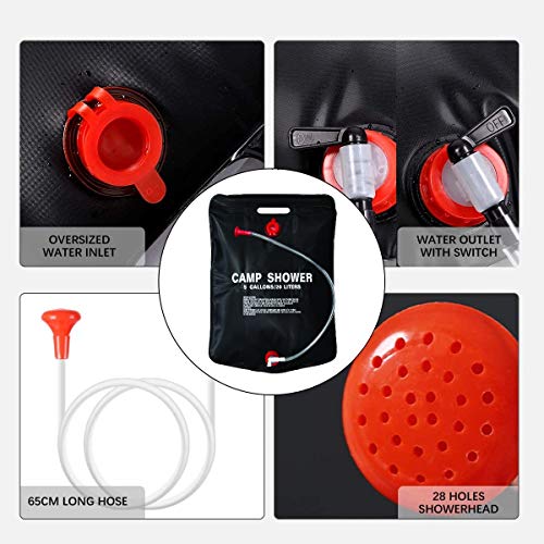 • ☀ DOCCIA SOLARE IN CAMPEGGIO: il formato gigante della borsa da doccia può contenere facilmente fino a 20 litri d’acqua per fare una doccia in aree remote. Ideale per il campeggio e nelle situazioni di emergenza quando l'acqua calda non è disponibile. Una bella doccia rinfrescante, ovunque.