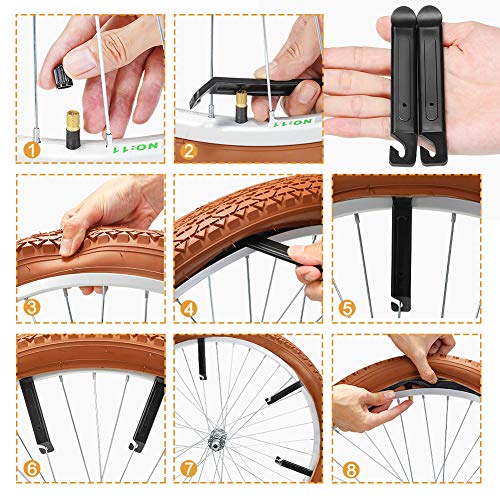 - Tutto con strumenti sempre con te: In realtà contiene tutto ciò che potrebbe essere necessario durante i tour in bicicletta. Il set comprende: 1 x borsa da sella per bicicletta; 1 strumento di riparazione bici 16 in 1; 2 cucchiai per pneumatici; 6 pneumatici senza colla e 1 lima in metallo; Chiave a brugola 1 * 4mm.