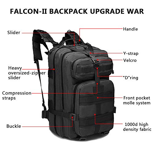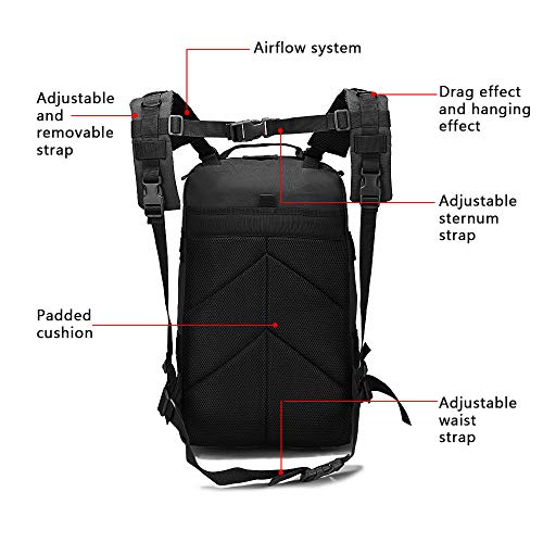 - Tessuto di alta qualità e comodo da indossare: lo zaino è realizzato in nylon, che è leggero, resistenza allo strappo, non fa marcire dopo bagnato; il pacco d'assalto presenta comode spalline in EVA e area posteriore con supporto in mesh per il massimo comfort, ventilazione, e forza durante il trasporto.