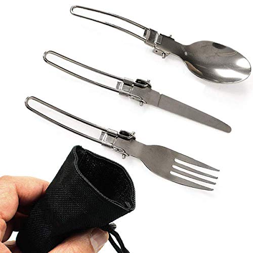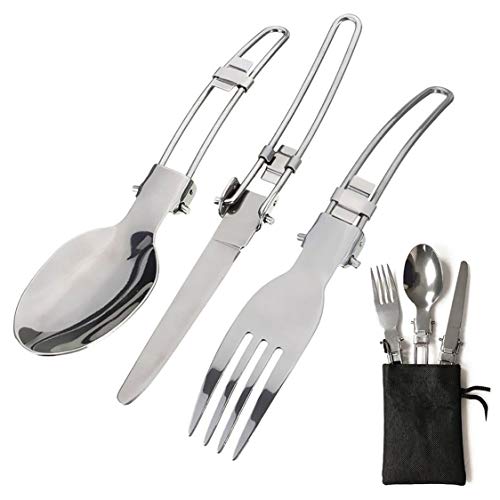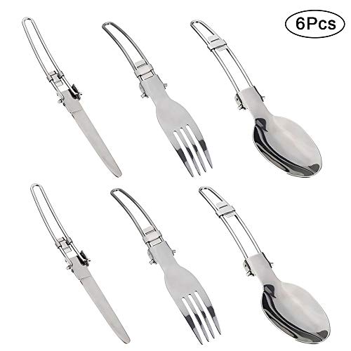 gotyou 6 Pezzi Posate in Acciaio Inossidabile,Posate Portatili/Posate Pieghevoli/Posate da Viaggio/Stoviglie da Campeggio/Coltello Forchetta Cucchiaio,Set di Posate Utensile da Picnic