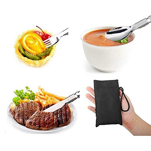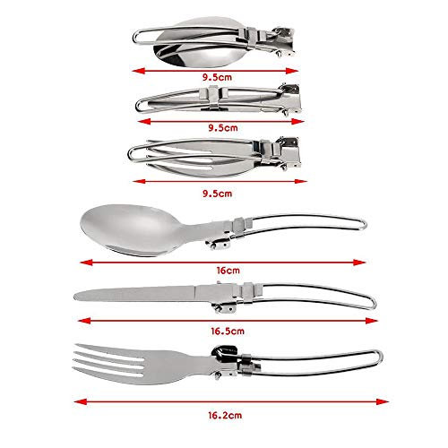 - [Quantità e specifiche] Compresi 2 set di posate in acciaio inossidabile, per un totale di 6 pezzi di stoviglie (cucchiaio / forchetta / coltello), sufficienti per la sostituzione e l'uso quotidiano, leggeri e pieghevoli. Fare riferimento all'immagine per dimensioni;