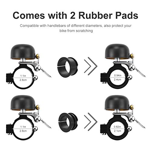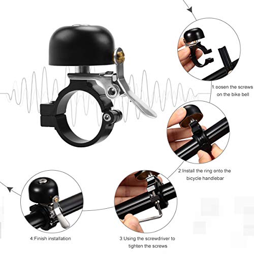 - 【Campanello per bici rumoroso】Il Campanello per bicicletta ci dà sempre un suono nitido e forte. Suoneria forte fino a 90 dB. I pedoni e i veicoli di passaggio possono anche sentire chiaramente la campana nel traffico intenso, il che rende la guida molto più sicura.
