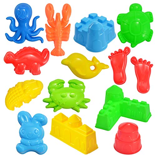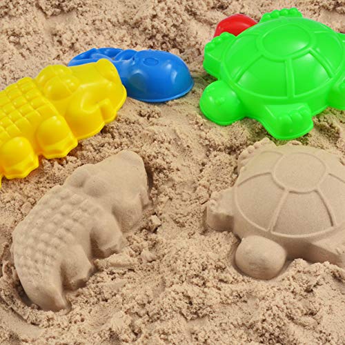 - 14 Varietà di stampi in sabbia: impronte, coniglietto, dinosauro, tartaruga, coccodrillo, polpo, granchio, delfino, aragosta, castelli.