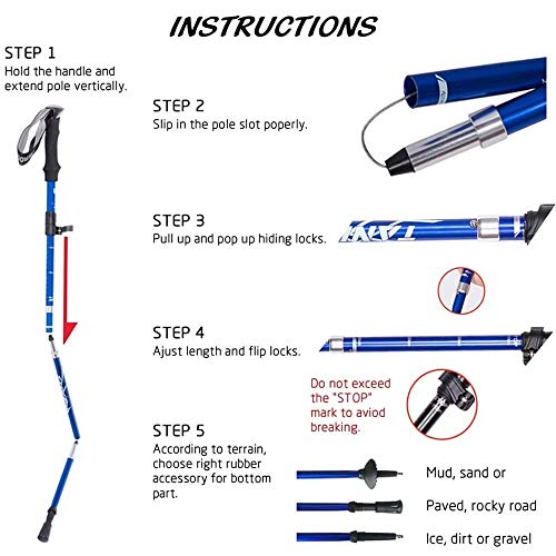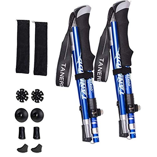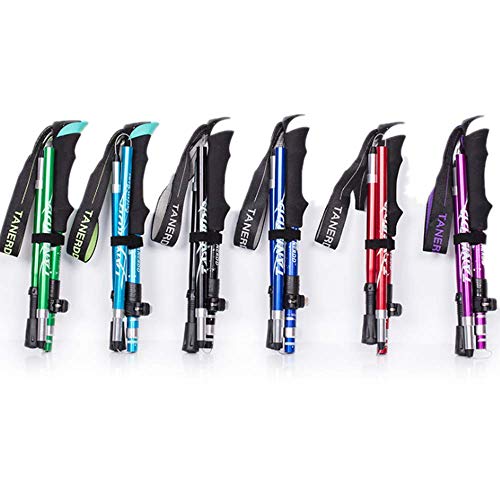 - Bastoni da trekking pieghevoli a 5 sezioni: con sistema Quick Lock è possibile regolare rapidamente i bastoncini da passeggio da 44" a 53", perfetti per diverse altezze indipendentemente da uomini corti o alti, donne e bambini.