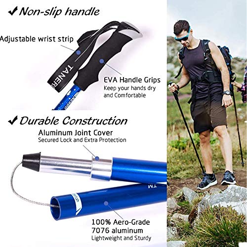 - 【Stabile e ultra leggero】I bastoncini da trekking sono realizzati in grado di aeromobile 7075 Auminum che dispone dei pali extra robusti e ultra leggeri per la maggior parte degli escursionisti principianti ed è solo 270 g, che può facilmente mettere in uno zaino dopo averlo piegato fino a 36 cm.