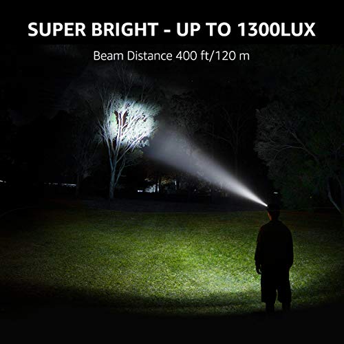 - 【Alta luminosità】Utilizzando LED XPG2 da 5 W,La luminosità massima raggiunge 1300 Lux e la distanza massima di illuminazione può raggiungere 120 M. Alimentazione: 3*batterie AAA (non incluse). Può essere utilizzato fino a 19 ore, 6 ore di utilizzo con la massima luminosità