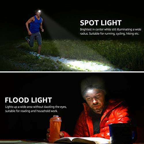 Lampada da Testa C500 (2 Pezzi), LE 6 modalità di Luce, Lampada Frontale LED 1300 lux Torcia LED, IPX4 Impermeabile per Campeggio, Corsa, Jogging, Pesca, Non include le batterie