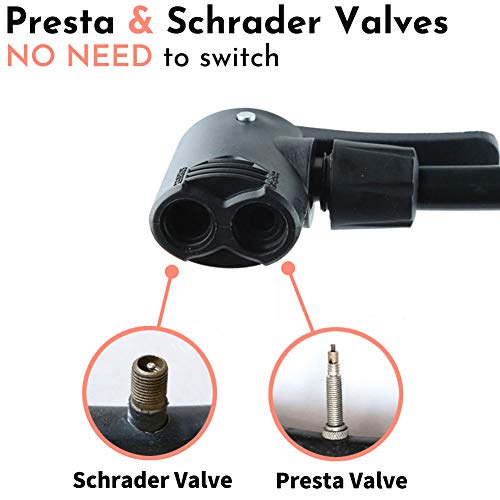Letton - Pompa da pavimento portatile per bicicletta, valvole Presta e...
