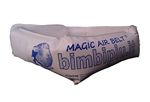 E’ una cintura gonfiabile in pvc regolabile nella circonferenza grazie alla chiusura a strap posta sui due lati. Aderisce perfettamente al corpo di chi la indossa, non ha alcun ingombro (il corpo e le braccia sono completamente liberi), la si può posizionare ad altezze diverse (in vita, sul bacino, a livello delle ascelle), permettendo di assumere la posizione migliore per imparare a nuotare spontaneamente. Modalità braccioli o salvagente possibile con due cinturine. Si può gonfiare e sgonfiare manualmente (attraverso una valvola); mano a che il bambino migliora la propria forza e la propria coordinazione la si sgonfia e la si stringe in modo che sia sempre perfettamente aderente al corpo e, senza rendersene conto il bambino impara a nuotare con la cintura completamente sgonfia (a parità di sforzo fisico). ATTENZIONE: Per permetterne l’utilizzo anche ai bambini alle prime armi, non ancora acquatici, si consiglia di utilizzare 2 magic air belts (per poterle usare in modalità braccioli e salvagente).