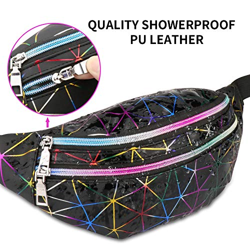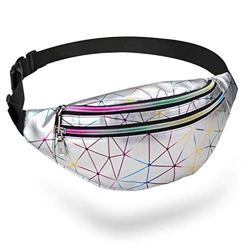 - 【ALLA MODA, LEGGERO, LEGGERO, IMPERMEABILE】 Aspetto accattivante con pelle PU olografico. Questa borsa leggera progettata per i bambini/donne pesa solo 138g (4.87 oz). Il tessuto resistente all'acqua della cintura in vita e della borsa protegge gli oggetti dall'umidità. NOTA: Solo a prova di spruzzi d'acqua.