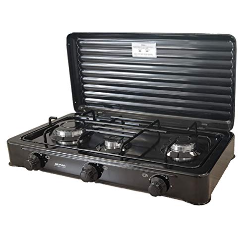 MPM Smile-KN/Cucina a Gas Portatile, Adulti Unisex 3 Quemadores, Nero