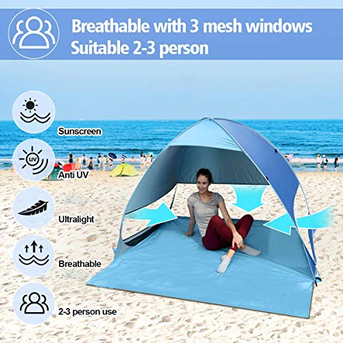 Osaloe Tende da Campeggio Istantanee, Resistente ai Raggi UV Buona Ventilazione Tende Ultraleggere per 3 Persone per attività Ricreative all'Aperto sulla Spiaggia Erbosa