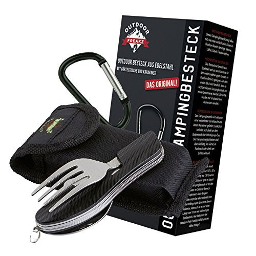 OUTDOOR FREAKZ Posate in Acciaio Inossidabile da Campeggio Pieghevole Nero