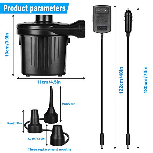 • 【Portatile e Leggero】la pompa per materasso gonfiabile è piccola e leggera, il che la rende più comoda sia per l'uso interno che esterno. Puoi facilmente portare le pompa elettrica portatile ad aria ovunque tu vada! Il cavo per sigaretta da 1,8 m in auto è conveniente per ricarica quando sei all'aperto.