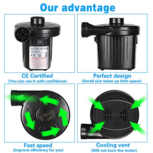 • 【Ampia applicazione】 La pompa elettrica FEALING è un potente gonfiatore e deflatore per uso interno ed esterno, in particolare per viaggi e attività all'aperto. Queste pompe ad aria elettriche vengono utilizzate per gonfiare cuscini d'aria, materassi ad aria, gommoni, mobili gonfiabili, un anello da nuoto e molto altro! Nota: non utilizzare per palloncini.