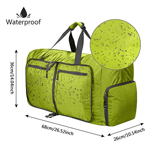 Colore:Verde Chiaro"Cuciture e Chiusure Lampo di Alta Qualità Le cuciture sono cucite bene per garantire un uso a lungo termine. Le chiusure lampo sono ben cucite bene, corrono tutta la strada verso il lato della borsa, puoi aprire completamente la borsa sportiva e palestra. Quindi non c'è bisogno di preoccupare che sarebbe rimanere bloccati mentre stai tirando la chiusura lampo. Resistente 420D Nylon Impermeabile Il borsone multiuso è realizzato in tessuto di nylon 420D, quindi è molto resistente, super-leggero, anti-polvere, impermeabile e pieghevole. Anche è perfetto per palestra, vacanza, viaggi, viaggio d'affari e sport, ecc. Specifiche Tecniche: Materiale: Nylon 420D Tessuto Dimensioni del Prodotto (non piegato): 68 x 26 x 36 cm Dimensioni del Prodotto (piegato): 30 cm x 32 cm Capacità: 80 L Attenzione: * Si prega di non lavarlo con lavatrice. Spennellalo con una spazzola morbida è basta; * Si prega di non stirarlo. Pacchetto Include: 1 x Borsone Viaggio"