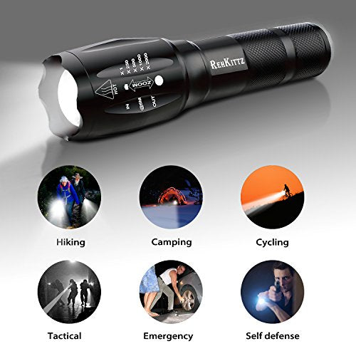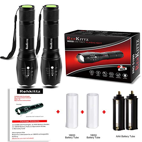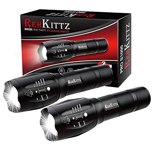 REHKITTZ Torcia Super Luminosa Portatile LED Torcia (2 Confezioni), 1000 Lumen Torcia Elettrica,Militare Torcia,Tattica Torcia,Impermeabile IP44 e 5 modalità di Illuminazione