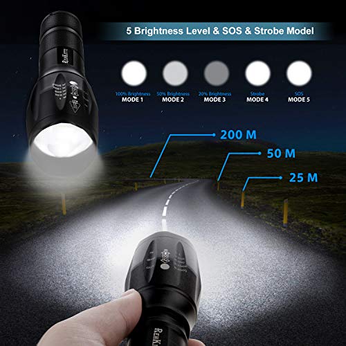 • ✅【LE MIGLIORI PRESTAZIONI PER LE ATTIVITÀ ALL'APERTO】- Duesta Torcia led ha 5 modalità (Alta | Media | Bassa | Strobe | SOS): la torcia può soddisfare qualsiasi esigenza di illuminazione. Informazioni sulla funzione torcia della lunghezza focale regolabile: supporta un angolo di luce massimo di 120 ° e potete allungarlo per vedere gli ostacoli lontani o richiamarlo per illuminare l'ampia area a corto raggio. FARE CLIC SUL PULSANTE AGGIUNGI AL CARRELLO!