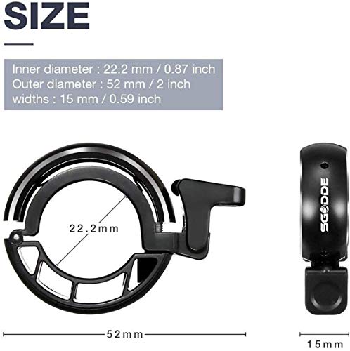 SGODDE Campanello per Bicicletta, Design Moderno, può Essere Montato su Tutti i Modelli di Biciclette (Diametro Manubrio da 22.2mm a 24 mm, Nero)