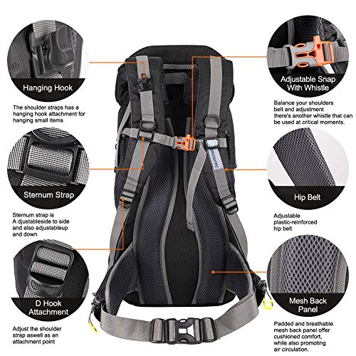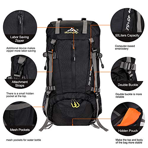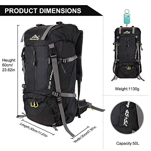 SKYSPER 50L Zaino da Treking, Impermeabile con Copertura della Nero