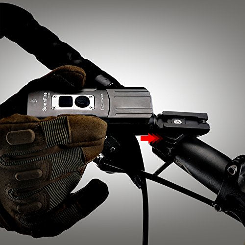 Soonfire FD38S faro per bici’faretto luce per bici 18700-lumen (max) spazza CREE LED luce brillante sopra la lunghezza di circa due campi da calcio e raggiunge quasi. Illumina il tuo percorso, sarà anche durare più a lungo, soddisfare la domanda preavviso di guida superiore o uguale a 120 km/h, è estremamente resistente e indistruttibile, anche sui terreni più difficili. Garanzia per lavoro pioggia o sole. Design versatile luce della bicicletta con supporto universale Fit può essere utilizzato per un' ampia gamma di attività: Road, Mountain Bike, biciclette ibride,attrezzi sportivi in città. La luce ha due ingranaggi regolabili’e un pulsante on-off Controllo della luminosità: A - Modalità di controllo illuminazione quotidiano: 1. Primo di tutto, tenere premuto interruttore di alimentazione per 1.5 secondi, si accenderà. 2. Premere il pulsante "MODE" da basso luminoso, medio luminoso ad alta luminoso B - Modalità di controllo dell'illuminazione di avvertimento: 1. Primo di tutto, tenere premuto interruttore di alimentazione per 1.5 secondi, si accenderà. 2.E poi premere il pulsante "MODE" per provare la marcia dalla luce bassa - luce media - momento culminante - ultra luminoso/lampeggiante -SOS C- Modalità di illuminazione e luce di avvertimento modalità di controllo commutazione Accensione Tenere premuto "MODE" per 1.5 secondi per cambiare dalla modalità di illuminazione quotidiana alla modalità di controllo dell'illuminazione D- Spegnere Fa clic sull'interruttore di alimentazione per spegnere, e memorizzare ultima modalità di illuminazione utilizzata. Attenzione: 1. La torcia elettrica da bicicletta non può essere utilizzata quando è in ricarica 2.Non tentare di smontare la torcia da bicicletta’in essa ci sono circuiti di precisione e batteria al litio.