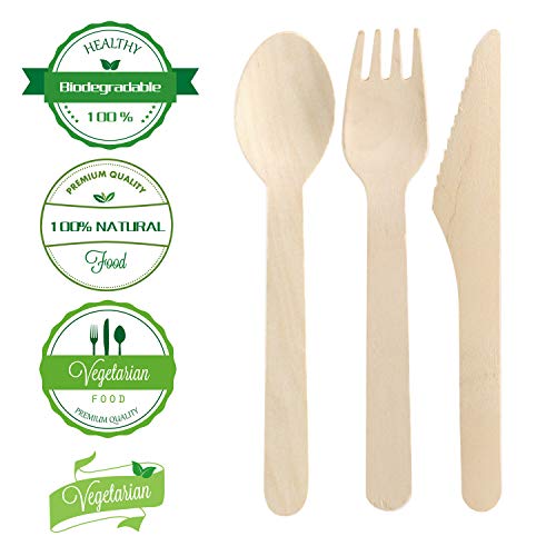 - ★ Ecologico: Questi set di piatti da festa (cucchiaio di legno, coltello di legno e forchetta in legno) sono biodegradabili e compostabili, che è molto meglio per il nostro pianeta. Una grande alternativa agli utensili in plastica
