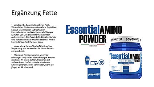 DescrizioneYamamoto nutrition essential amino powder 200 grammi. Yamamoto nutrition essential amino powder è un integratore alimentare a base di aminoacidi essenziali da fermentazione con aggiunta di acqua di cocco.Contenuto della confezioneProdotto