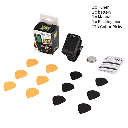 Accordatore Chitarra Clip Digitale EXJOY Tuner Elettrici di Alta Sensibilità con 5 Modalità, 12 Plettri per Chitarra, Adatto per Chitarra, Basso, Violino, Ukulele, Cromatico