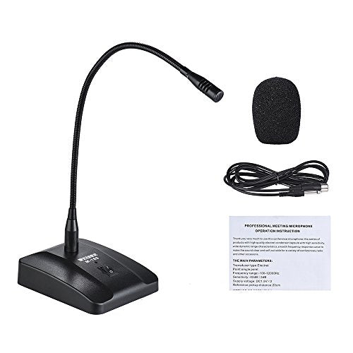 Caratteristiche: Microfono a condensatore professionale per vari incontri, conferenze, radio e altre occasioni. Alta sensibilità, ampia gamma dinamica, curva di risposta a frequenza liscia rende il suono chiaro e morbido. Il pickup cardioidale respinge il suono fuori asse. Albero flessibile da 40 centimetri, libero per prestazioni. Alimentato da batterie 2 * AA. Con interruttore on / off e indicatore luminoso. Viene fornito con un cavo di collegamento da 3 metri / 10 piedi (1/4 "XLR a 6,35 mm).Specifiche tecniche: Tipo di trasduttore: Microfono a condensatore elettretico Materiale: metallo e plastica Gamma di frequenza: -100-12000Hz Pattern Pickup: Cardioide Sensibilità: -43dB + -3dB Lunghezza cavo: ca. 3 metri / 10ft Lunghezza albero flessibile: 40cm / 16in Alimentazione: batterie 2 * AA (non incluse) Peso dell'articolo: 460g / 16.3ozElenco dei pacchetti: 1 microfono 1 * Cavo di collegamento 1 * Mic Spugna 1 * Manuale d'usoNota: Le batterie non sono incluse.