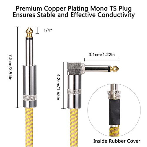 - ∮Connettore mono da 6,3 mm 1/4 "TS Il cavo per strumento Pro Phono misura 3 m (10 piedi), perfetto per collegare la maggior parte della tastiera per basso elettrico classica Acoustic con amplificatori, processori di effetti o DI box.