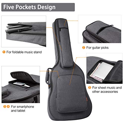 CAHAYA Borsa Chitarra Imbottita 18mm Custodia per Chitarra Acustica e Classica [Ultima Versione Rinforzata] con 5 Tasche Portaoggetti