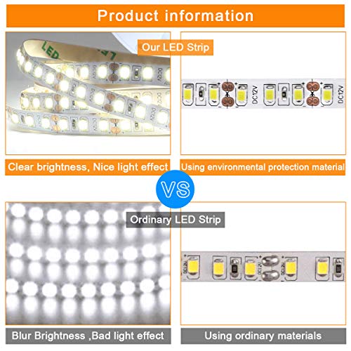 • ✿Super luminosa ---- Con 600 LED 2835 SMD a 6500K, questa striscia di luce bianca diurna può produrre fino a 720 lumen per metro, molto più luminosa delle comuni strisce LED SMD 5050.