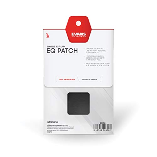 Il rinforzo nero per grancassa Evans EQPB2 per pedale doppio è flessibile e realizzato in nylon antiscivolo per potenziare l'attacco e rafforzare la pelle senza modificarne il suono.