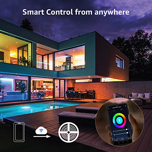 - [App intelligente]: la banda LED della musica ha 8 modalità. Puoi facilmente controllare il prodotto tramite la lampada o il telecomando, goditi la vita intelligente secondo i tuoi gusti. La connessione WiFi è molto più stabile di Bluetooth e utilizza meno. Le funzioni dimmerabili e timer possono regolare una varietà di modalità scena; Tempo, conto alla rovescia; esecuzione automatica; La funzione timer può preimpostare automaticamente gli scenari in base all'ora di alba locale.