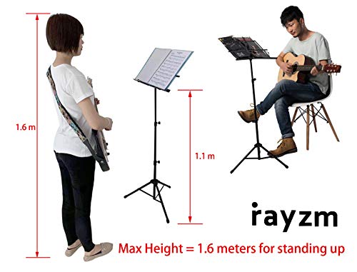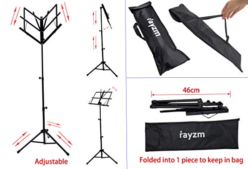 Rayzm leggio robusto portatile e pieghevole leggio in metallo con borsa da viaggio. Altezza regolabile, carico massimo 1,5 kg, leggero e compatto adatto per i viaggi e sistemabile nel ripostiglio