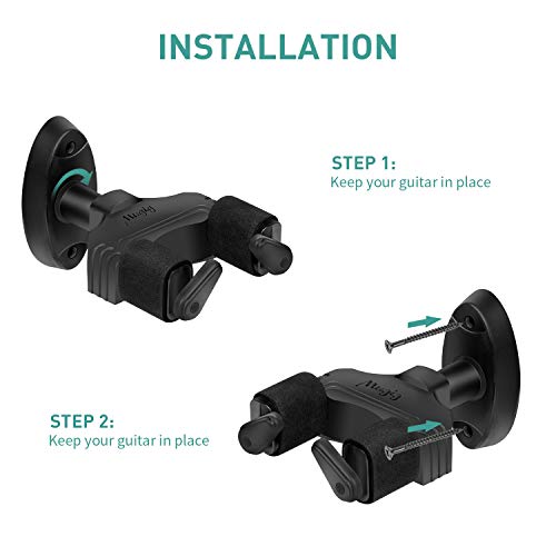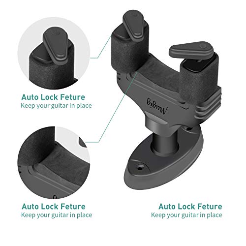 Supporto a Parete per Chitarra, Mugig Gancio da Muro per Chitarra con Blocco Automatico di Sicurezza, Gancio Chitarra con Schiuma di Protezione EVA di Alta Qualità,per Chitarra/Basso/Ukulele/Violino