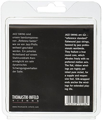 Taglia:JS111 Light 11-47 Corde Thomastik per chitarra elettrica Jazz Swing Series Nickel Flat Wound. Questa è la leggendaria corda per chitarra jazz a carica piatta. l'elenco dei loro utenti si legge come un "who's who" del jazz. Per molti dei grandi del jazz di oggi, è ancora la regina indiscussa tra i Flat Wounds. È una vera e propria ferita piatta (nessuna "ferita da terra" o "ferita compressa" come dovrebbe essere) con un avvolgimento di nichel lucido attorno ad un nucleo rotondo e offre la base perfettamente bilanciata per i toni necessari per il jazz tradizionale.