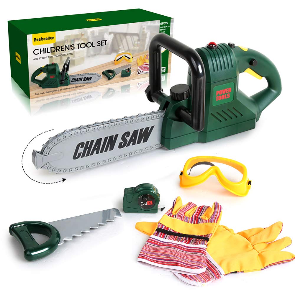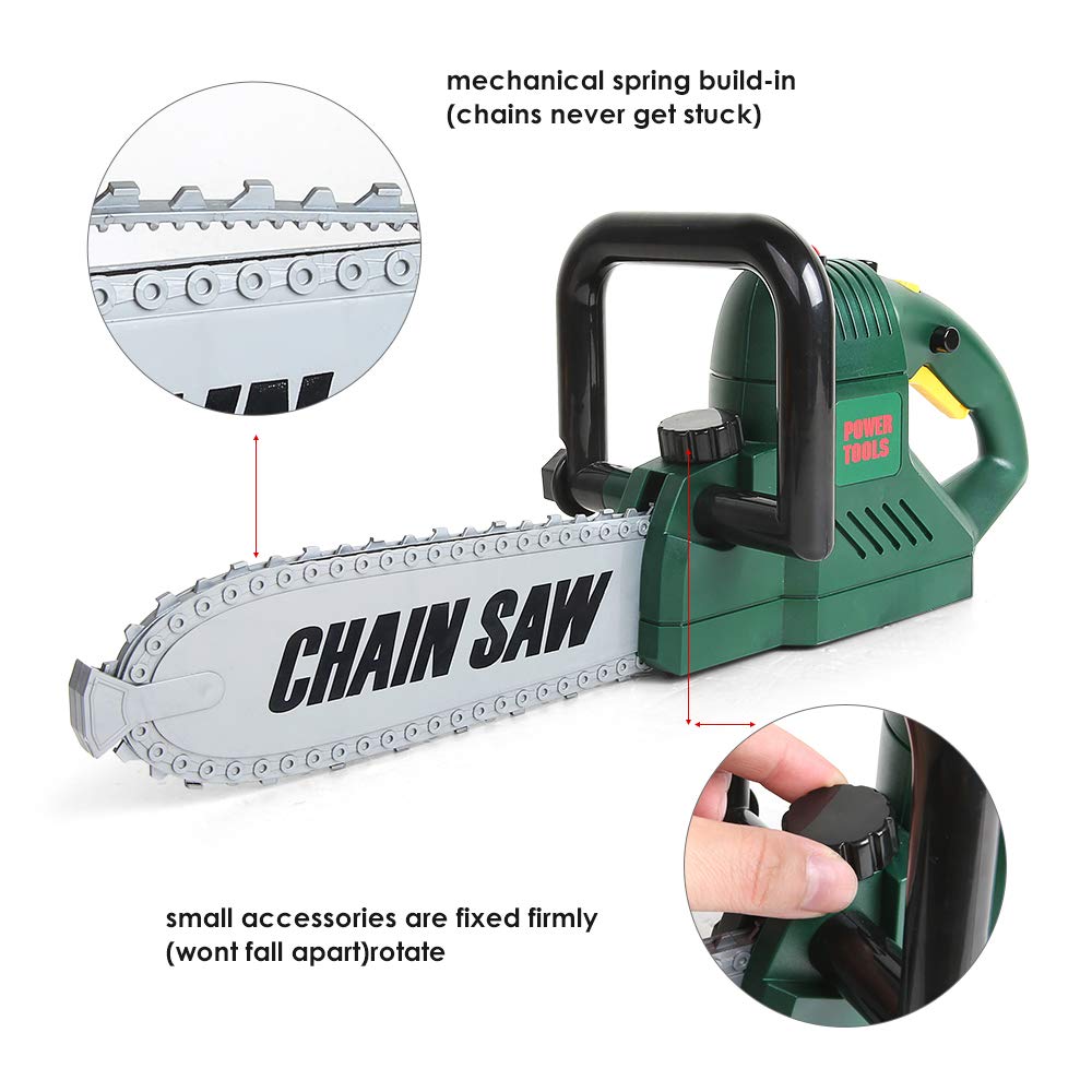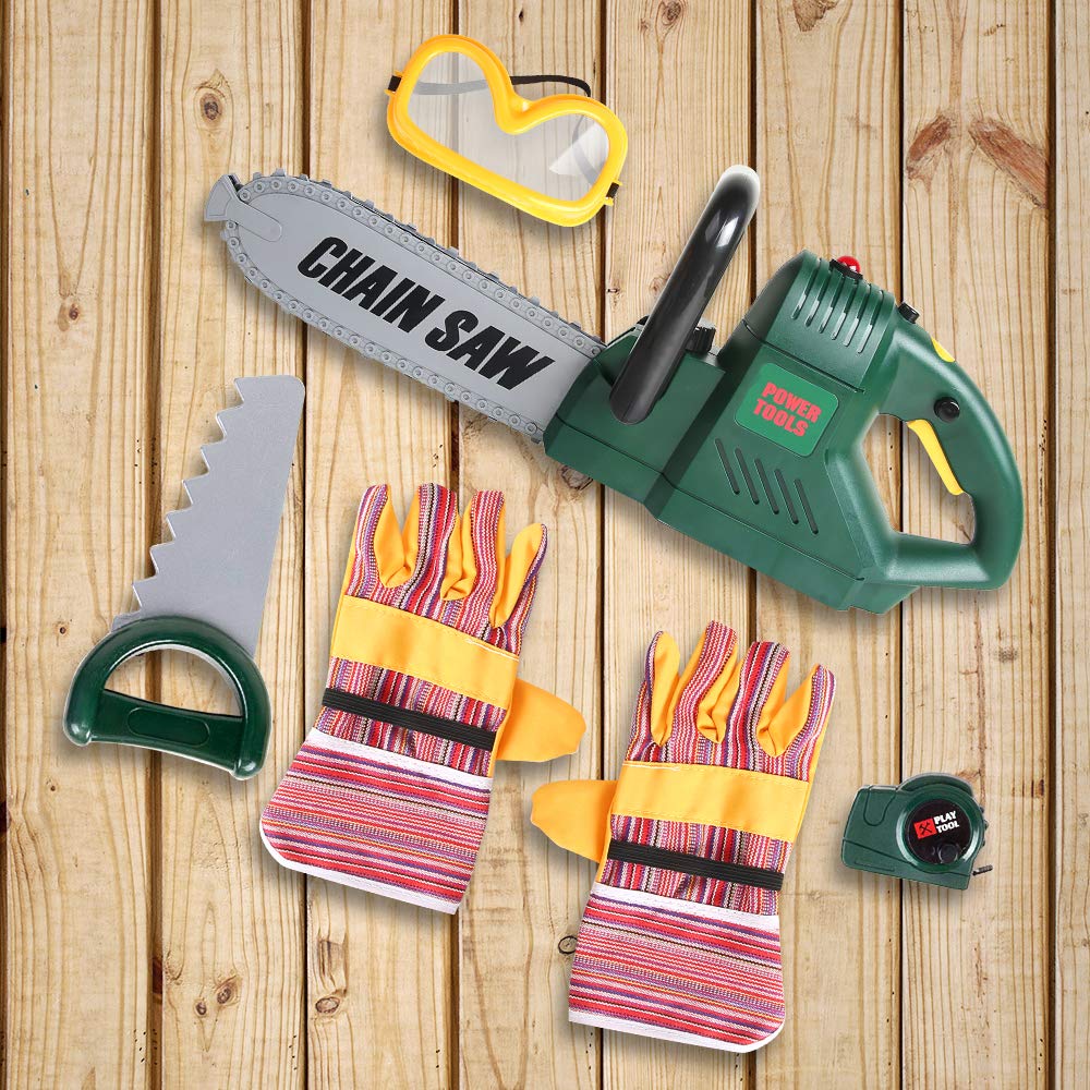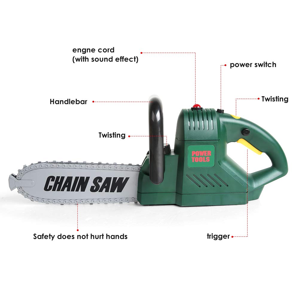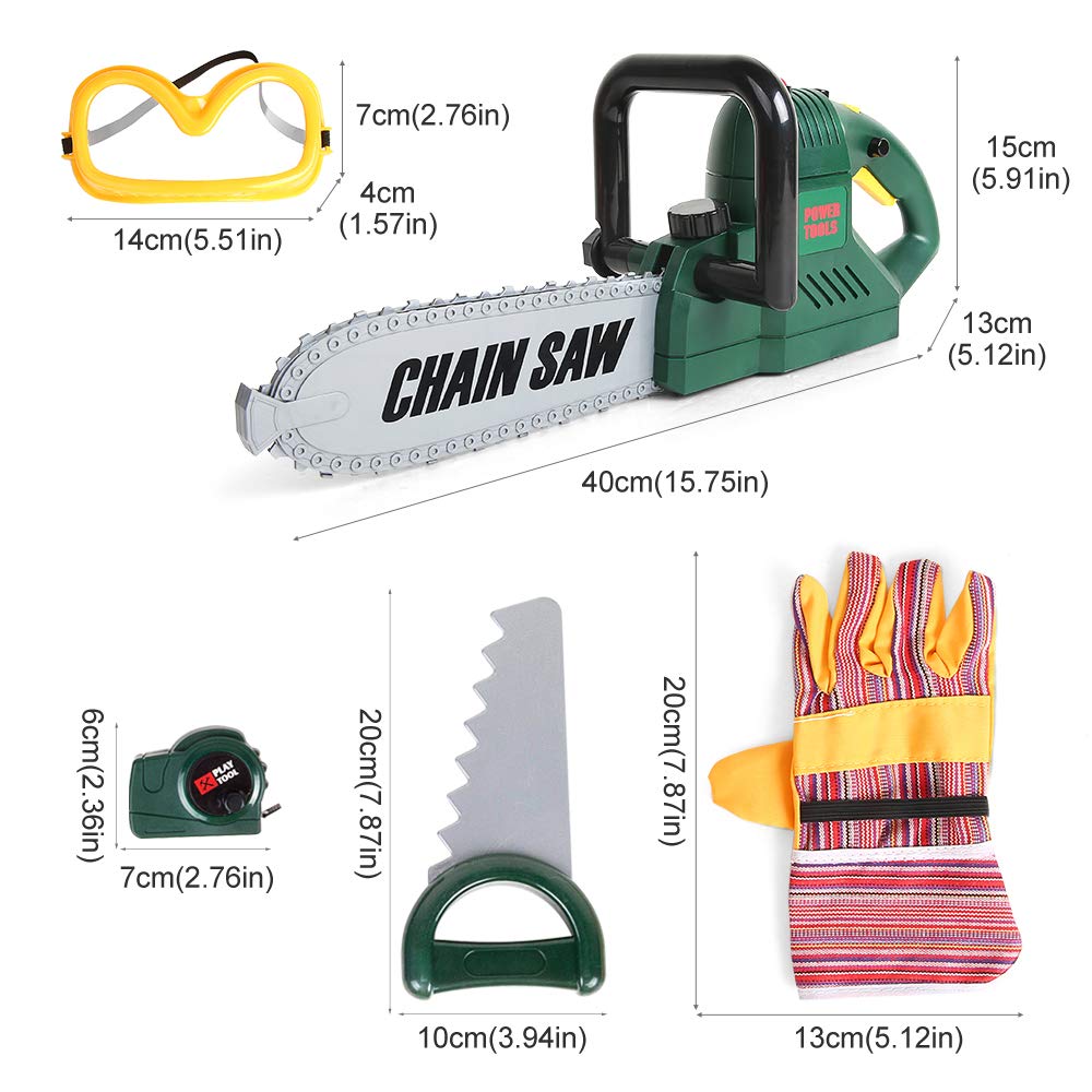 - 【Elenco Prodotti】 Motosega Giocattolo X 1; Occhiali Protettivi X 1; Misura di Nastro X 1; Seghe X 1; Un Paio di Guanti