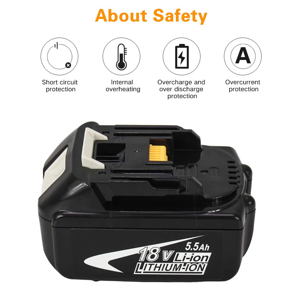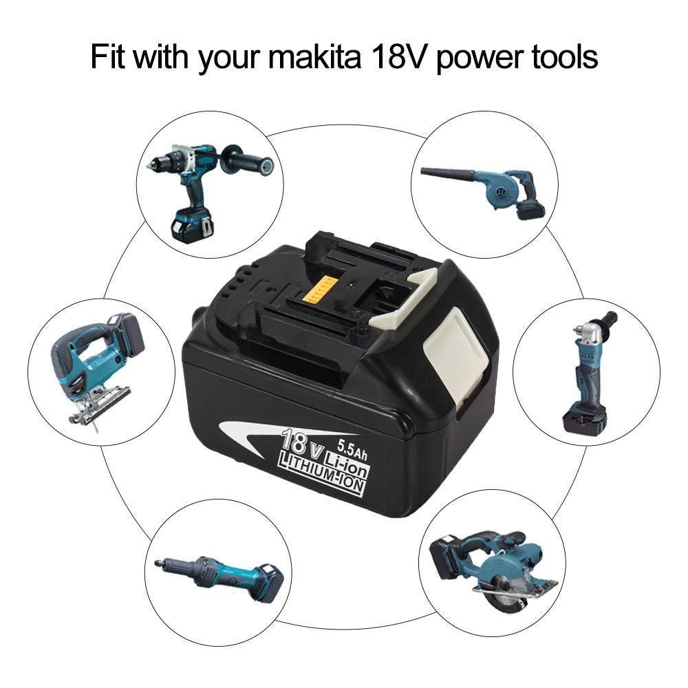 - Nuovo di zecca | Capacità elevata: 5500 mAh | Tipo di batteria: Ioni di litio | Tensione: 18 Volt | Batteria al litio da 2 batterie da 5,5 Ah per makita 18v