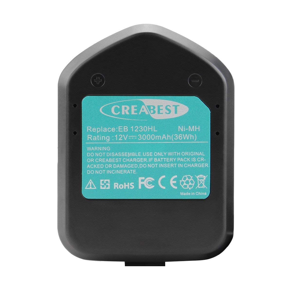 Creabest 12V 3000mAh Ni-MH Batteria Sostitutiva per HITACHI EB 1212S EB 1214L EB 1214S EB 1220BL EB 1220HL EB 1220HS EB 1220RS EB 1222HL EB 1226HL EB 1230HL EB 1230R EB 1230X EB 1233X87