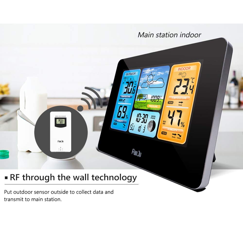 Konesky Stazione Meteo Wireless, barometro termometro Temperatura Nero